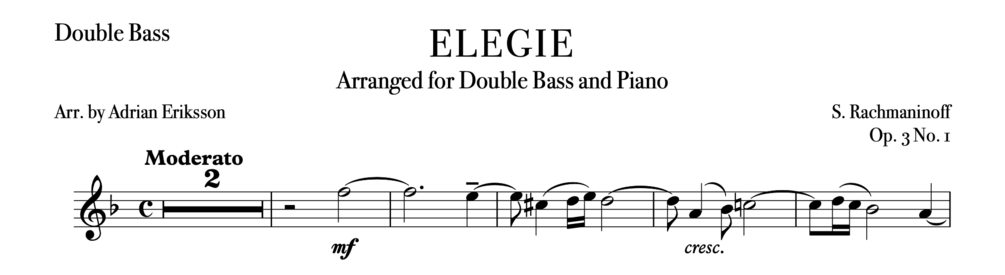 Elégie has a wonderful melody, beautiful harmonies and some dramatic moments in the middle section. The lamenting, gentle melody suits the double bass well being transposed in the written key of D minor.
