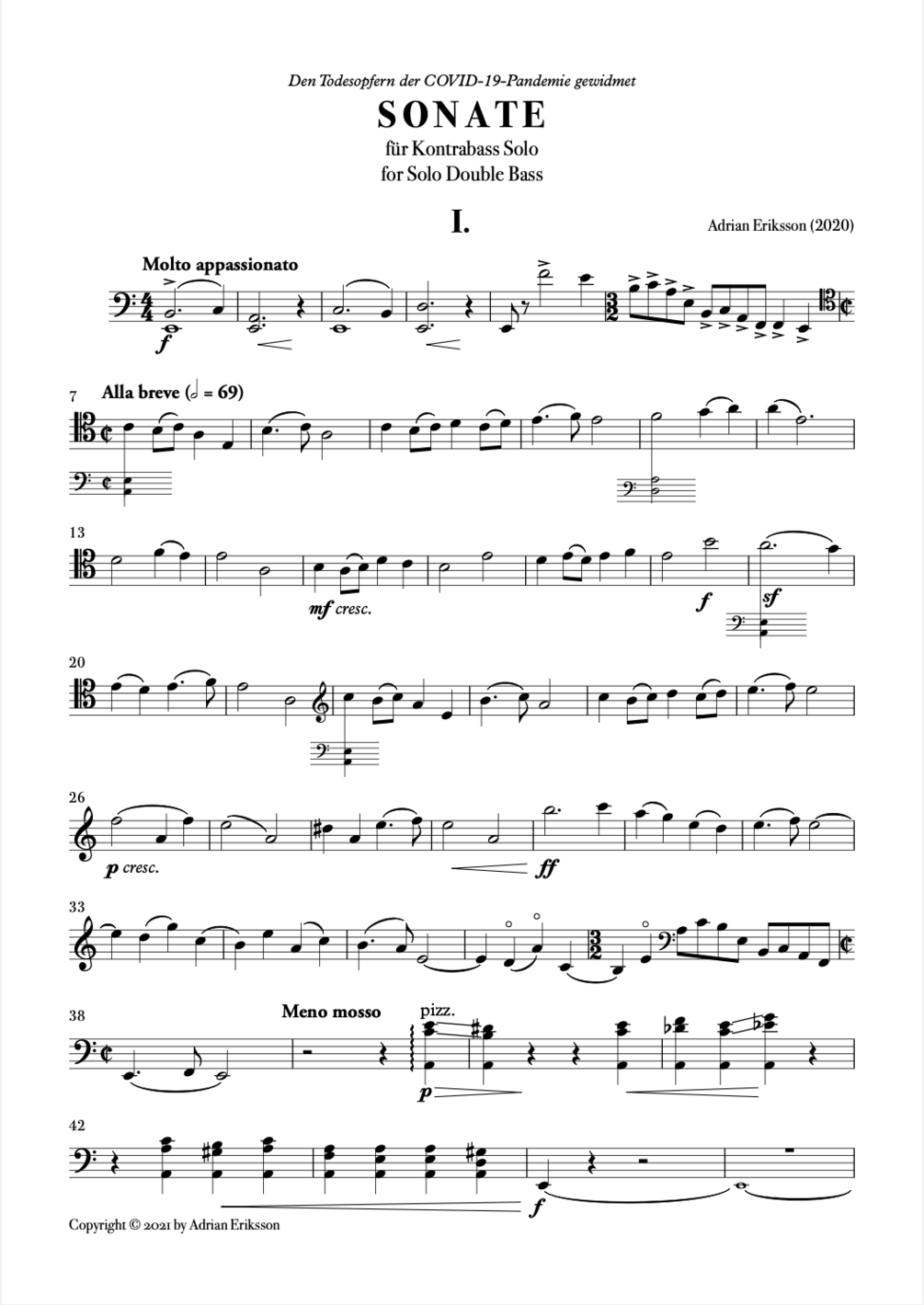 Adrian Eriksson: Sonata for Solo Double Bass (2020)